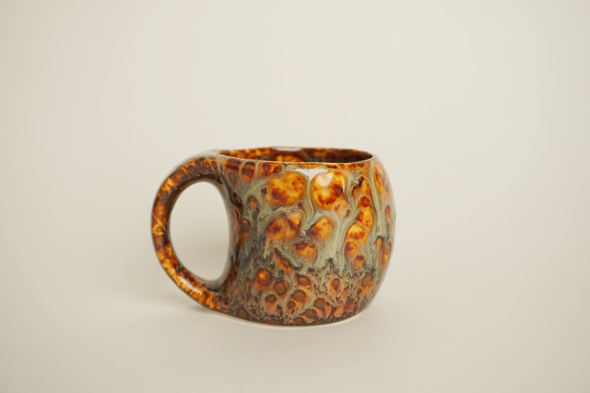 Its shape is incredibly small and cute, just like a ring worn on the hand, making it both practical and aesthetically pleasing. The color of each mug varies depending on how close it was to the flame during firing. As shown in the photos, even mugs fired together can turn out wildly different—some warmer, some cooler, some with more pooling or texture. This is not a flaw—it’s part of the magic.